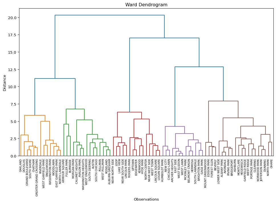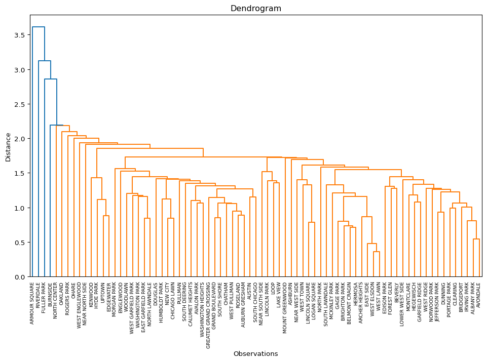 To illustrate these methods, we will use the Chi-CCA sample data set with socio-economic determinants of health for Community Areas in 2020 in Chicago, IL. It has only 77 observations, which facilitates the drawing of a dendrogram. The latter becomes difficult for larger data sets.