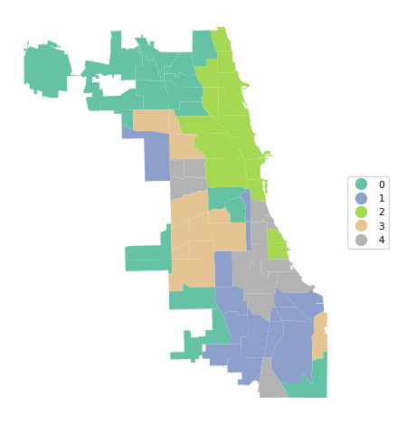 cluster_map(dfs, cluster_labels, title="", cmap='Set2', legend_fontsize=8)