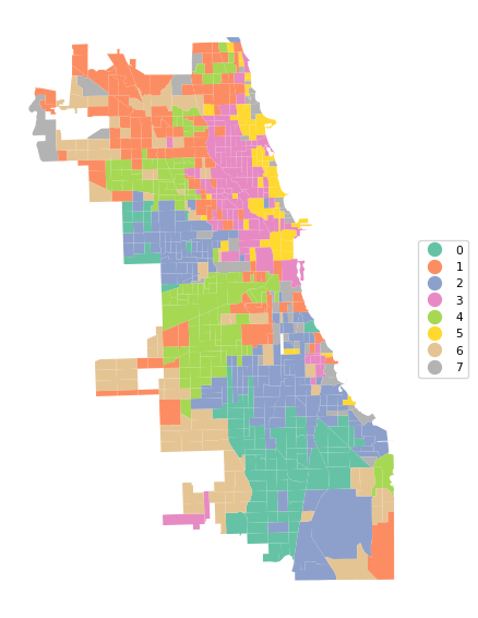 Finally, cluster_map provides a view of the spatial pattern of the solution.